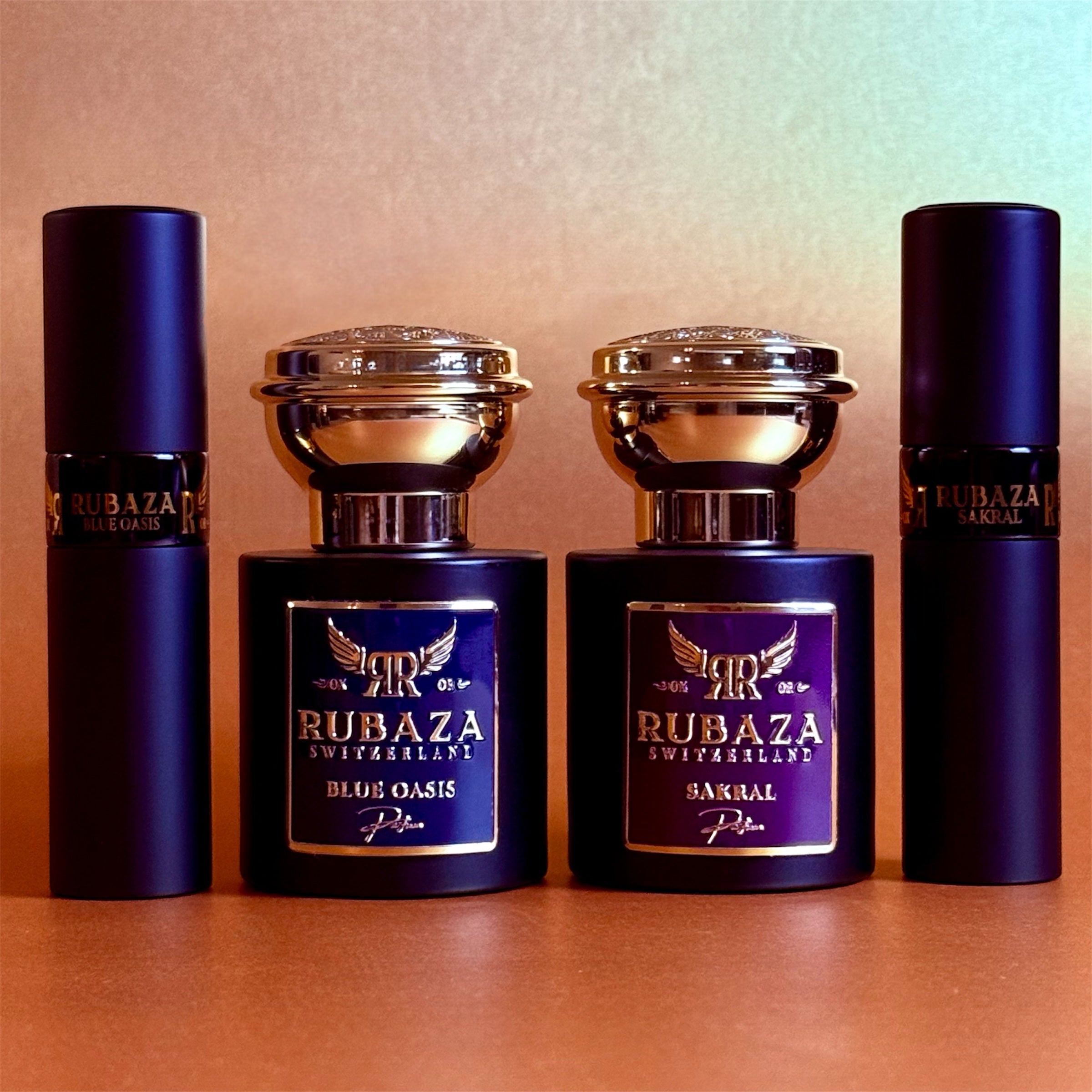 Four exclusive Rubaza fragrances in elegant, luxurious design – ideal for gifting or stylish personal enjoyment. Each scent tells its own story: